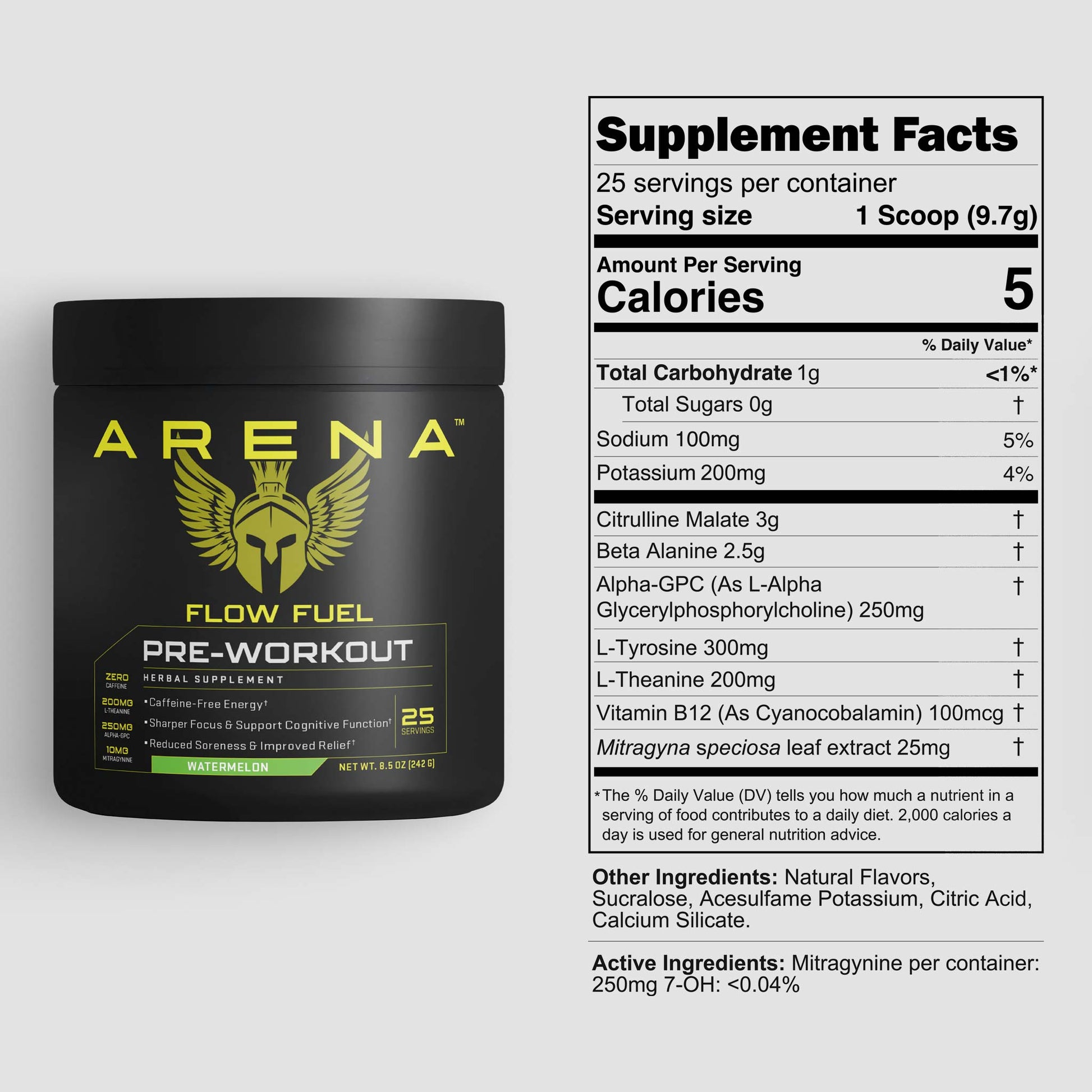 Smoother energy.** Sharper focus.** Faster recovery.** Arena™ Flow Fuel is the ultimate caffeine-free pre-workout designed for endurance, clarity, and post-training relief.**
