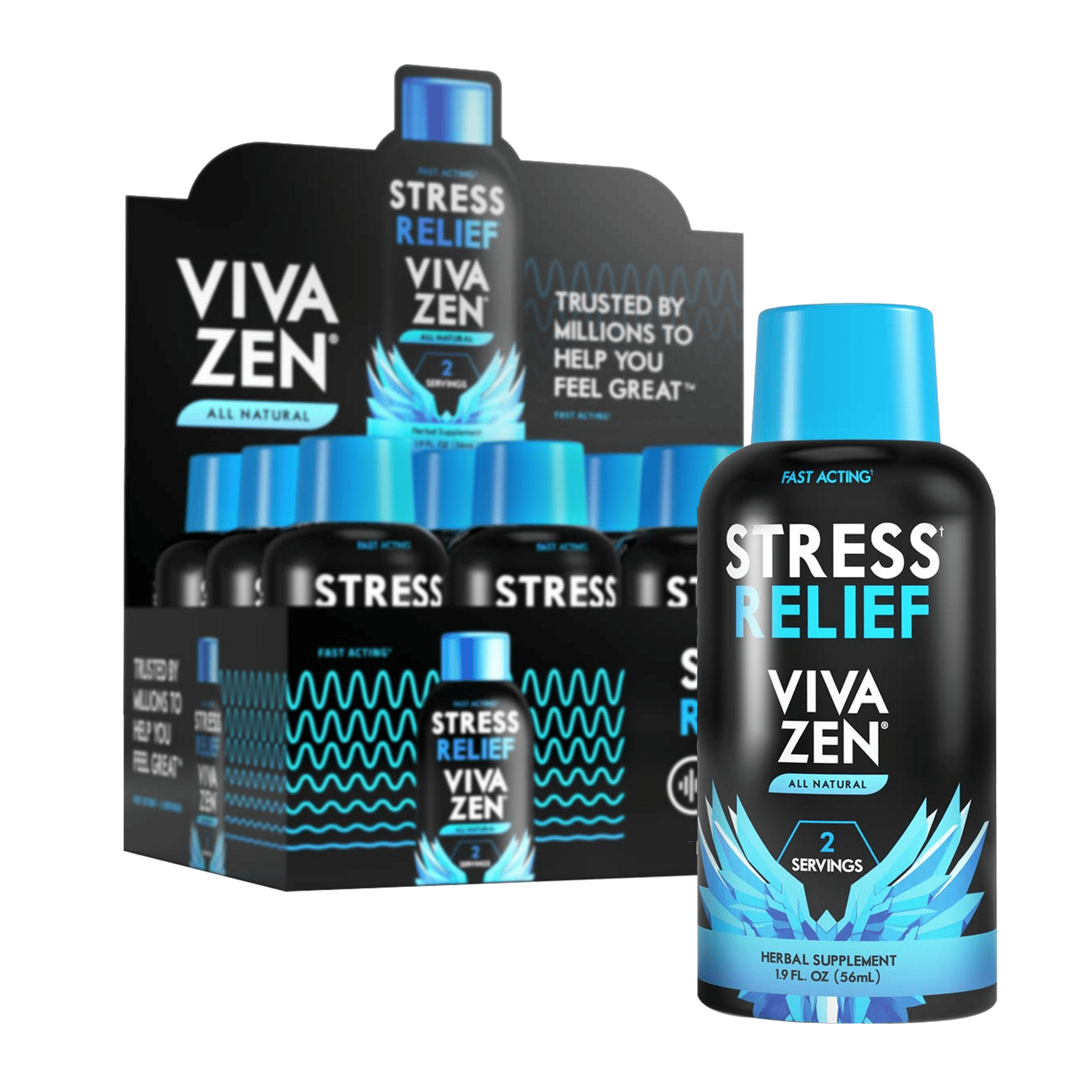 Vivazen® Stress Relief* shot offers your customers grounded focus and real results by helping consumers manage stress naturally. This fast-acting, plant-based formula supports calm, clarity, and a balanced mindset**, making it an ideal product for wellness-driven customers looking to stay centered without relying on synthetic solutions.*